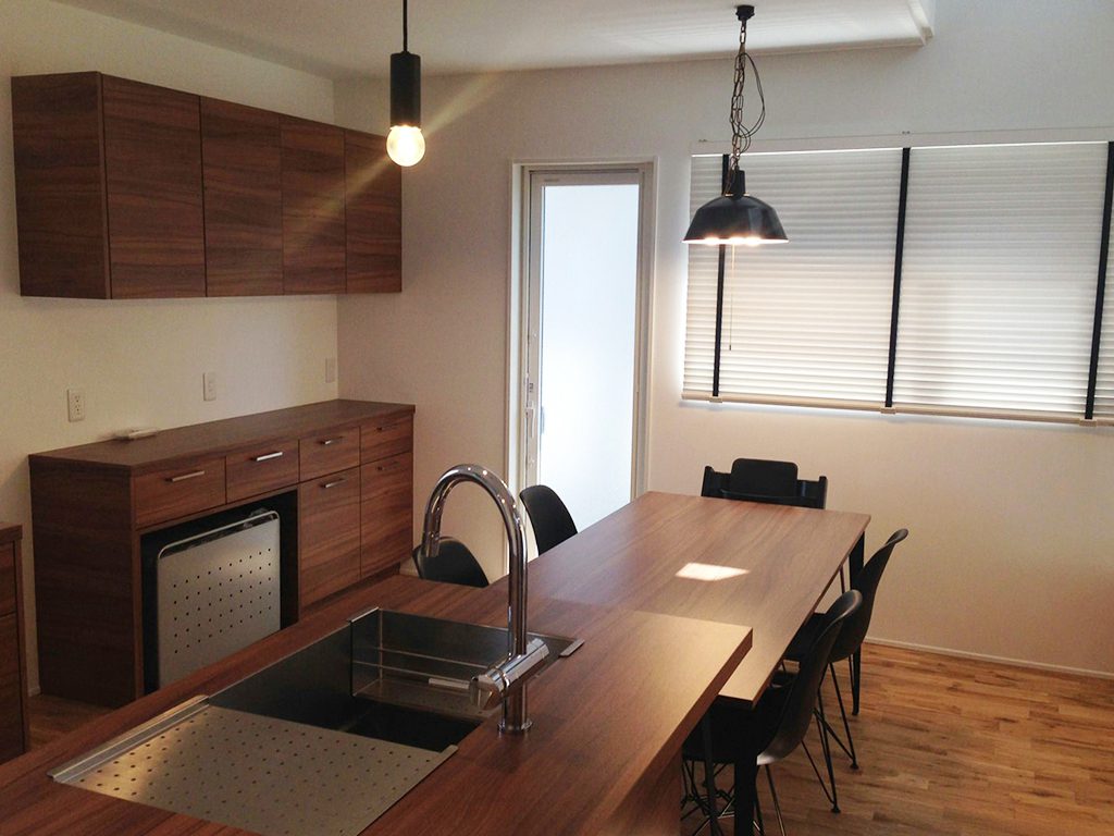 落ち着いたグリーンの外壁、玄関は木材レッドシダでカッコイイおうちです♪ リビング空間のアクセントになるアイアンの階段や、シンクと調理スペースを分けたキッチンもオシャレ♪
